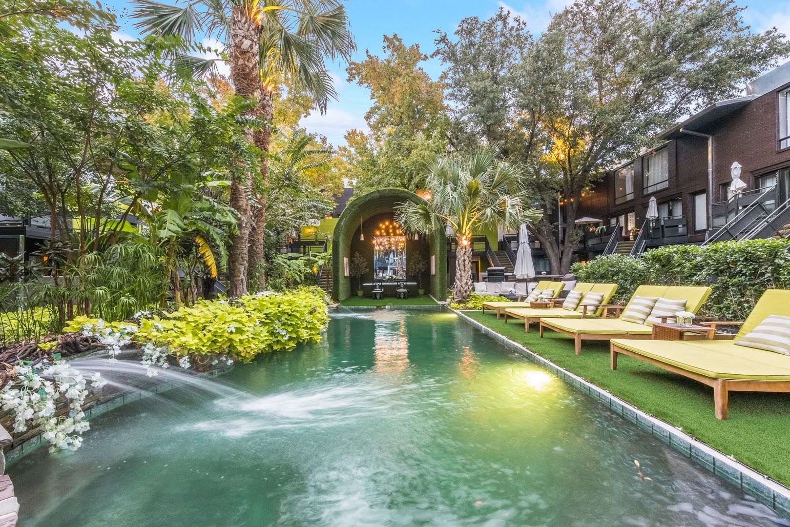 You may have seen this property as the oh-so-stylish, dreamlike backdrop chosen by Neiman Marcus for the photo shoot of their fall collection. It’s no wonder, with chic cabanas and stunning water features surrounded by lush greenery–the lavish Fox Trott lifestyle is making a name for itself.
